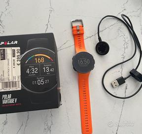 Orologio Polar Vantage V GPS integrato, tracciamento del percorso, barometro, battiti al polso, test di recupero, notifiche mobili, registrazione attività 24/7, calorie, recupero notturno, registrazione del sonno, controlli musicali, carico di allenamento, metriche di nuoto, potenza di corsa al polso e touch screen a colori, Bluetooth. lo sportwatch con misurazione della potenza di corsa integrata Batteria di lunga durata: fino a 40 ore di allenamento con cardiofrequenzimetro e GPS; resistente e impermeabile Sistema di lettura ottica Polar Precision Prime: monitoraggio accurato della frequenza cardiaca dal polso per oltre 130 sport, tra cui nuoto, ciclismo, running. Cassa in alluminio, Cavo USB per la ricarica, Cinturino in silicone, schermo 1,2 pollici, 271 g,