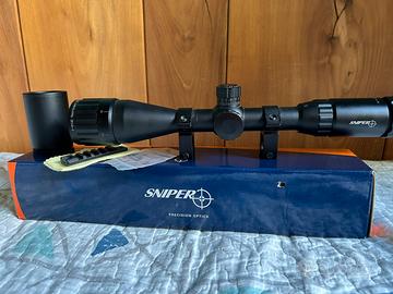 Ottica nuova. Comprata due anni fa e lasciata purtoppo in armadio. Marca sniper precision optics, lenti immacolate come si vede dalle foto controluce di quest’ultime. Con accessori e agganci da 22 mm . Spedisco ovunque. Reticolo mildot illuminato rosso/ verde