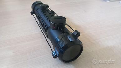 Vendo per inutilizzo questo mirino per fucili in metallo con finitura nera opaca, con reticolo Mil Dot a doppia colorazione rosso e verde.