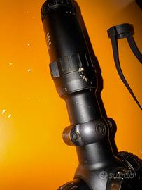 L’ottica è segnata in corrispondenza della ghiera di ingrandimento, ma perfettamente funzionante. Punto rosso centrale con 11 livelli di luminosità. Reticolo 4-I (croce). Corredo e scatola originali.