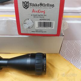 Vendesi ottica NIKKO STIRLING GOLD CROWN AIR KING 4-12X42 AO Half Mil Dot 3/8 inch mounts NGRA41242 , nuova completa di anelli slitta 11mm .Pagata 175 € senza anelli