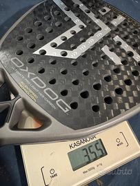 Vendo Oxdog Ultima Pro Light, modello 2024. Piatti in ottime condizioni, utilizzata sempre col protettore in foto (non so sotto come sia messa). Peso 355 grammi con overgrip e protettore.