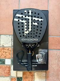 Vendo racchetta da padel Oxdog Ultimate Pro + del 2025, edizione Spanish Federation: colorazione speciale fatta per la squadra spagnola. Compresa di scatola, kit per OptiWeight e accessori. La racchetta è in ottime condizioni, usata sempre con protettore ancora montato, e con ancora il suo grip originale. Presenta solo il graffio mostrato in foto sulla testa, piatti perfetti. Peso: 369g (come riportato sulla scatola).