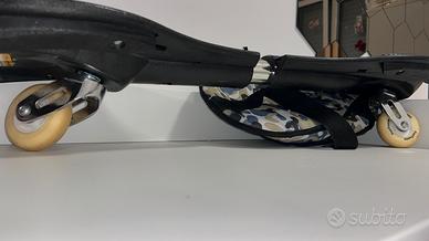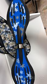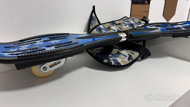Waveboard color blu elettrico con ruote che si illuminano in movimento. Porta custodia annessa. Condizione dell’oggetto usurate con lievi graffi sui lati e sotto all’oggetto.