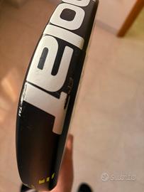 Pala ottime condizioni, ottima per livello intermedio, ottimo controllo, misto carbonio, usata per 3 mesi 2 partite a settimana, presenta piccoli segni da contatto con vetri ma solo estetici, no crepe. Pagata 200