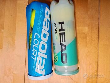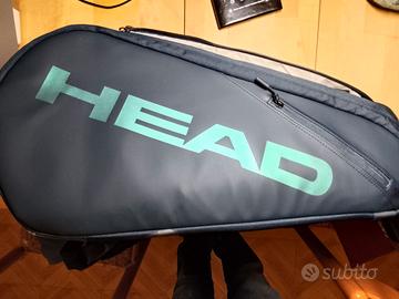 Borsa head con tre tasche (una termica) e vano portascarpe, colore blu e logo head grigio cangiante. Tubi palline come da foto, ancora sigillati. Tutto comprato a natale 2025, usato pochissimo.