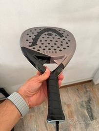 Vendo pala da Padel head speed motion 2025 ary sanchez. La pala si presenta in ottime condizioni generali, usata per poche partite da una ragazza principiante, con un difetto nella parte alta come indicato in foto che non ne compromette la giocanilita e le performance. Prezzo del nuovo 169 €. Per qualsiasi altra info resto a disposizione. Grazie.