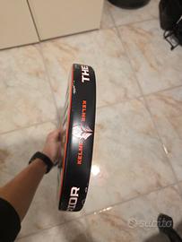 Telaio e piatto in carbonio 12K con gomma EVA ad alta densità: grande potenza nei colpi d’attacco e buona stabilità anche in difesa.