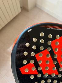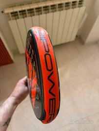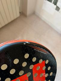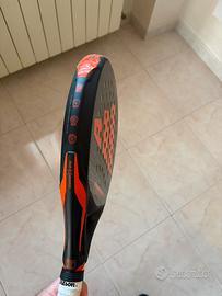 Racchetta usata per 2 mesi 2 partite a settimana, piccoli segni da contatto a vetri no crepe o danni strutturali, ottimo dteto generale, ottima per livello intermedio, ottimo controllo