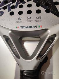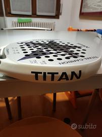 racchetta top di gamma full carbon + filamenti in titanio sui piatti per una risposta precisissima e potente piatti ruvidi con grafica in rilievo 3D e cuore in Eva multistrato ...top della tecnologia € 320,00 solo questo per questo mese €170,00