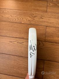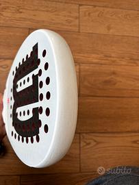 Pala Padel Wilson Bela LT 2.5 Buone condizioni. 10 mesi di utilizzo (1,5 ore a settimana) CARATTERISTICHE TECNICHE PRICNCIPALI Peso: 355 grammi (nominale), ideale per chi privilegia l'agilità e la manovrabilità. Forma: A goccia (Teardrop), che garantisce un bilanciamento versatile tra attacco e difesa. Bilanciamento: Medio-alto, circa 260-265 mm, per offrire una spinta extra nei colpi dall'alto nonostante il peso ridotto. Nucleo: Soft EVA Foam, una schiuma morbida che assorbe meglio gli urti e offre un tocco più ammortizzato e confortevole. Piatti: Carbonio 3K intrecciato, per mantenere una buona rigidità e reattività all'impatto. TECNOLOGIE INTEGRATE Spin Effect Texture: Superficie con trama 3D accentuata (rispetto alla v2) che aumenta il grip sulla pallina per generare massimi effetti. Sharp Hole Technology: Un processo di foratura avanzato che migliora il mordente su ogni colpo.