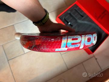Vendo perche voglio cambiare racchetta e provarne altri modelli. La racchetta ha 3 mesi di utilizzo, i piatti sono perfetti e sempre tenuta con copritesta. Ha solo qualche graffio superficiale nei lati della testa della racchetta.