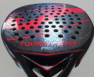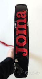 Chiedimi pure altre foto. Racchetta da padel Joma Tournament Pro. E' stata usata poco, presenta dei segni di usura e dei salti di vernice sulla testa dovuti alla rimozione del protettore, visibili nelle ultime foto. I piatti sono in condizioni ottime ed è ancora molto performante, non ci sono danni strutturali. Peso con overgrip 364g.