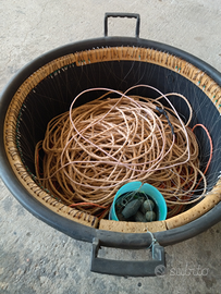 Palamito di fondale per cernie occhioni pagari pezzogne scorfani ecc.in grande cesta da 110 litri alta 50cm con diametro di 60 cm...letto in treccia galleggiante stile spagnolo....130 ami distanziati a 5 metri 120 euro..