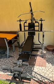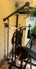 Permette di fare: panca piana, panca inclinata, lat machine, leg extension, leg curl, bicipiti, tricipi al cavo alto.