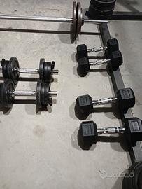 Tre coppie di manubri come da foto,una coppia da 5kg una da 7,5kg,una componibile.