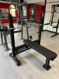 Vendo rimanenza atrezzature palestra. Technogym selection: 1 Multihip 1 Low row 1 Jungle 4 stazioni Excite 700: 1 Wave 1 step 1 tapis roulant 8 panche spogliatoio in legno naturale solo seduta. 1 tv 49 pollice 1 tappeto gommato 5 metri x 1,5 metri Manubri Teca da 2 kg a 40 kg misti esagonali le mezze pezzature. 1 totem dischi Teca diametro 50 100 kg dischi diametro 50 3 bilancieri olimpionici 12,5 kg ciascuno 2 bilabcieri okimpionici 15 kg ciascuno Panatta sport Evo: 1 jungle 4 stazioni(lat machine, pulley, cavi alti e bassi ,1 tricipite Toorx : 1 leg press 1 panca piana 1 panca inclinata 1 hyperestension 1 Rack squat 1 panca multifunzione 2 rastreliere 1 sissy squat 1 leg reise con trazioni 1 panca scott Per altre info scrivetiminim privato .