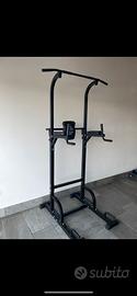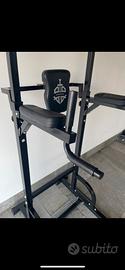 Stazione da allenamento a corpo libero, peso massimo 205 kg. DORSALI, PETTORALI, ADDOMINALI. Barra per trazioni dorsali con doppia impugnatura, regolabile in altezza da 163cm a 224cm. Schienale regolabile per addominali in sospensione con poggia gomiti. Sostegni per esecuzione DIP. Maniglie per flessioni ed esercizi in verticale. Non esisitate a contattarmi se avete qualsiasi dubbio.