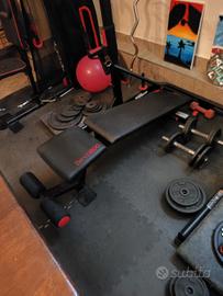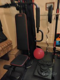 Vendo attrezzatura completa per palestra casalinga, ottimo stato, usata in ambiente domestico. Include: • Multi-gym con stack pesi e stazione lat machine • Squat rack compatto • Panca piana Decathlon Bench 900 • Panca regolabile (inclinabile) • Bilanciere dritto + bilanciere EZ curl • Vari dischi in ghisa. • Manubri regolabili Vendita articoli singoli o tutto insieme se preso tutto insieme. Ritiro a carico dell'acquirente.