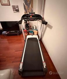 Tapis Roulant Diadora Exess 12.5 come nuovo, Semi-Professionale Casse audio integrate Specifiche tecniche: Dimensione superficie di corsa 54 x 145 cm Dimensione nastro di corsa 51 x 145 cm Spessore nastro di corsa 1,8 mm Potenza motore 3,5 hp Velocità massima 22 Km/h Inclinazione del piano di corsaElettrica 15% Dimensioni LCDL Retroilluminato Rilevazione cardiaca palmare Ricevitore cardiaco wireless Fascia toracica Supporto tablet Programmi di allenamento 43 Programmi di velocità ed inclinazione 36 Programmi Target Programmi utente Programmi HRC Programma di rilevazione massa grassa Tasti rapidi di velocità sul computer Tasti rapidi di velocità sul corrimano Tasti rapidi di inclinazione sul computer Tasti rapidi inclinazione sul corrimano Speakers mp3 Peso massimo utilizzatore 140 Kg Preassemblato Pieghevole salvaspazio Chiusura servoassistita Piano di corsa ammortizzato 8 elastomeri double deck Ruote di trasporto Dimensioni aperto203 x 90 x 154 cm Dimensioni chiuso150 x 90 x 170 cm Peso netto118 Kg Disponibile per visione o prova