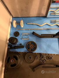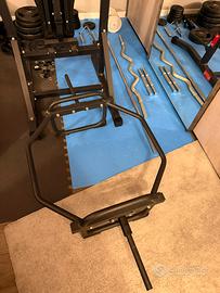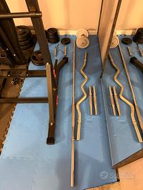 Set completo attrezzatura palestra domestica Vendo attrezzatura per allenamento a casa, perfetta per esercizi di forza, bodybuilding o allenamento funzionale. Attrezzatura principale •Panca romana con panca inclinabile •2 manubri •1 bilanciere dritto •1 bilanciere sagomato •1 bilanciere esagonale (trap bar) •2 elastici da allenamento da 15 kg ciascuno Dischi pesi •4 dischi da 10 kg •4 dischi da 5 kg •8 dischi da 2 kg •2 dischi da 1 kg Peso totale dischi: 82 kg Accessori inclusi •Supporto per esercizi T-Bar •Impugnatura triangolare •10 morsetti fermadisco Pavimentazione •15 tappetini 30 × 30 cm •4 tappetini 50 × 50 cm Ideale per creare una home gym completa con tutto il necessario per allenarsi.
