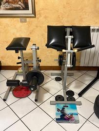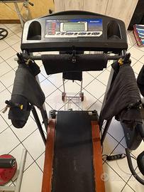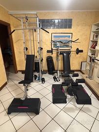 (foto non esaustive) Vendesi palestra domestica completa / home gym composta da attrezzatura ben tenuta e visibile in foto. Presenti: stazione multifunzione a cavi/lat machine con pacco pesi, tapis roulant Turner California TM 1800 PRO II, cyclette reclinata Horizon Comfort 207, cyclette verticale Horizon, panca multifunzione con supporto bilanciere e leg extension, panca addominali, panca inclinata, 2 macchine per polpacci, sacco boxe, supporto autoportante Outshock, punching ball da terra, step, set manubri/dischi/portapesi e accessori vari. Ideale per allestire una palestra completa in casa senza comprare tutto nuovo. Preferenza per vendita in blocco, ma valuto anche i singoli pezzi. Attrezzi elettrici provabili al momento del ritiro. Ritiro a mano, no spedizione. Smontaggio e trasporto a carico dell’acquirente.
