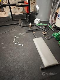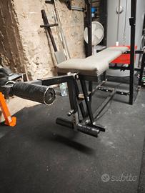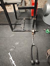 Vendo attrezzatura completa per home gym, in un unico attrezzo è possibile fare panca piana e panca inclinata con panca e poggia bilanciere già integrati, leg extenction e leg curl con cavo con attacco al pacco pesi, presenti inoltre altri due cavi, uno alto e uno basso, presenti anche una panca con fermi per gambe per fare lat machine e una panca con appoggio piedi per pulley. Pacco pesi da 60kg reali, si può fare di tutto, non serve altro per un allenamento completo. La macchina presenta un po' di ruggine nella parte bassa, niente di compromettente, al massima basta una verniciatina per una questione estetica. Do insieme anche una presa larga per lat, una triangolo per pulley e una presa stretta per bicipiti e tricipiti. Per qualsiasi cosa resto a disposizione, la macchina è già smontata. Posso anche trasportarla con furgone se ci si mette d'accordo.