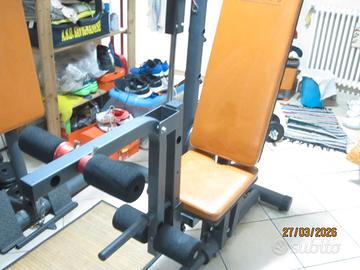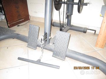 TRAZIONI guidate tramite cavi d'acciaio (dall'alto, verso il basso, come dal basso) SPINTA e DISESA assistite tramite Barre per una corretta esecuzione.. BILANCERE anche Libero, con vari punti d'appoggio regolabili.. PANCA versatile con varie posizioni di inclinatura, Completa di assist per gambe