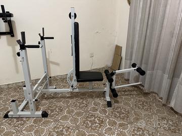 Vendo come da titolo attrezzi per palestra come foto, tutto come nuovo: Panca multiuso Tappetino Rotella Barra per trazioni Bilanciere curvo 2 bilancieri retti, 160cm e 180cm Manubri manico rosso Manubri manico nero Panca Elastici Stazione dip da parete con schienale Carrucola pesi palestra N. 4 pesi da 10 KG N. 4 pesi da 5 KG N. 10 pesi da 2,5 KG N. 2 pesi da 2 KG N. 4 pesi da 1,25 KG N. 4 pesi da 0,75 KG Rack fatto da me Vendo tutto in blocco.