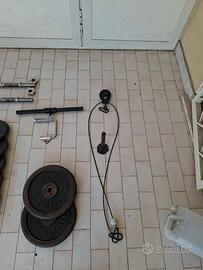 Prezzo: 200€ trattabili Vendo attrezzatura completa per allenamento in casa, ideale per creare una mini palestra domestica. Il set comprende: - Dischi in ghisa (circa 80 kg totali) - Bilanciere - 2 manubri smontabili a vite - Panca per allenamento - Stazione con carrucola tipo Decathlon con impugnature (fino a 130 kg) - Elastici fitness Tutto funzionante e pronto all’uso. Perfetto per allenamento completo: petto, schiena, braccia e gambe. Possibilità di vendita anche separata. Ritiro a mano. Scrivimi per info. Zona Ponte di Nona