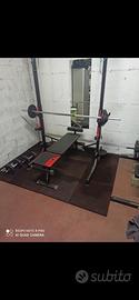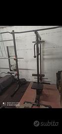 Vendo palestra per un allenamento completo a casa con rack ,panca,lat machine usabile sia in alto che in basso,bilancieri, manubri e pacco pesi.