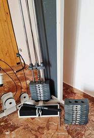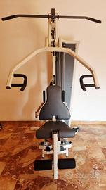 Palestra da casa perfettamente funzionante e praticamente mai usata. Presenta segni sulla vernice come in foto dovuti al montaggio e smontaggio. I pesi ci sono tutti, alcuni presentano macchie. Per ulteriori foto chiedete pure. Stazione individuale con carrucola bassa e pedana fissa per eseguire esercizi di qualità da club. Stazione per pec dec a doppio perno per flessibilità e ampiezza di movimento: consente la stessa completa libertà di movimento che si ottiene da un allenamento con manubri. Il risultato è un esercizio che mira in modo più efficace ai muscoli per risultati superiori. I pesi possono essere montati sia sul lato sinistro che su quello destro della macchina, consentendo la personalizzazione. Grazie alle 11 posizioni di movimento del braccio di pressa, è possibile eseguire oltre 30 esercizi, ognuno con la corretta ergonomia e posizione per la massima sicurezza e i migliori risultati. Le molteplici posizioni di presa sul braccio della pressa consentono una precisione ergonomica I semplici perni di regolazione in un solo passaggio consentono di regolare completamente la seduta e lo schienale per adattarsi a persone di tutte le taglie. Pressa per il petto Rematore da seduti Alzate laterali per le spalle in piedi Curve per bicipiti in piedi Estensioni per tricipiti ai cavi Estensioni delle gambe Curve per le gambe Alzate dei polpacci Estensioni lombari Crunch addominali con resistenza pressa per il petto inclinata adduzione orizzontale della spalla flessione della spalla posteriori per i deltoidi pressa per le spalle da seduto ampi pulldown Trazioni alla sbarra con presa inversa fila di lat machine da seduti Munita di Manuale istruzioni per il montaggio e Manuale generale comprensivo di allenamenti (tutto in inglese). Misure : larghezza 119 cm lunghezza 182 cm altezza 210 cm