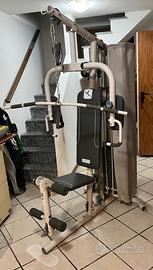Palestra multifunzione Domyos HG60-4 perfettamente funzionante. Ideale per allenamento completo a casa: permette di lavorare su petto, schiena, braccia e gambe grazie alle diverse stazioni (pressa, pulley alto e basso, leg extension). Struttura solida e compatta, adatta sia a principianti che a utenti più esperti. Prezzo trattabile Vendo per inutilizzo.