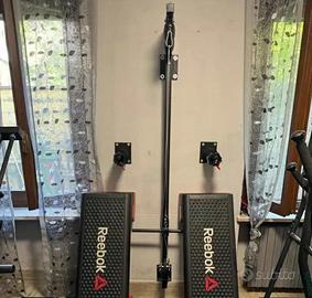 multipower con bilanciere guidato ganci anche per bilanciere libero stazione multifunzione dip station e adominali cavi incrociati cavo basso pulley bilancieri liberi manubri più 120kg di pesi restrelliera pesi step Reebok lat machine spinning bike ellittica tutto in ottime condizioni prezzo per tutto 650€ un vero affare valutò anche vendita separata