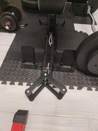 Vendo per inutilizzo home gym completa con multifunzione Corenght 900 con lat machine, leg extension, chest Press etc. Oltre al multifunzione, cedo panca pieghevole, rack per bilanciere con altezza regolabile, per squat, panca piana etc. Bilanciere, bilanciere Ez, 4 barre manubri. Aggiungo una serie di accessori: 2 corde per tricipiti, addominali alla lat, cavigliera, maniglie, etc. Sono inclusi diversi dischi per bilancieri e manubri: 2x15Kg, 6X10kg, 6x5kg, 2x2.5kg, 4x2kg, 8x1kg, 4x0.5kg per un peso totale di oltre 140Kg. Il tutto è stato tenuto in ottimo stato e poco utilizzato.