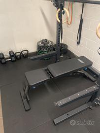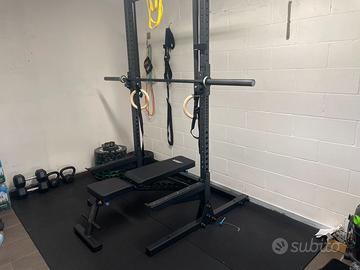 Vendo palestra home gym Xenios comprende : - Rack Pro con barre safety - Panca regolabile - Bilanciere olimpico 20 kg - Blocchi dischi su bilanciere - Dischi Bumpers 110 kg - 2 Manubri Dumbell 17,5 - 2 Kettlebell 10 kg - Anelli olimpici - 6 pz pavimento gommato 1 cm - Timer nano pro - corda da salto Tutto pari a nuovo, acquistato tutto 6 mesi fa