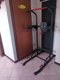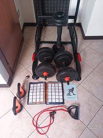 Palestra multifunzionale Yoleo con altezza regolabile, compreso di : panca con 7 inclinazioni 2 manubri 1 bilanciere 4 dischi da 5kg 4 dischi da 2,5 kg 4 dischi da 2 kg kit montaggio 2 schede esercizi 2 cavi in plastica dura ultracompatto in ottime condizioni