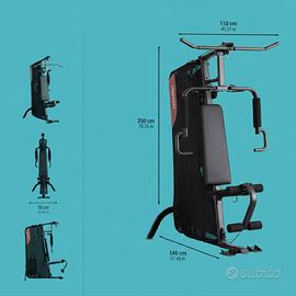 Tutto in uno: Hai la barra per il Lat Machine, le maniglie per le spinte/butterfly e il supporto per le gambe (leg extension).