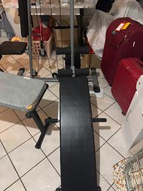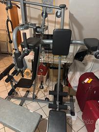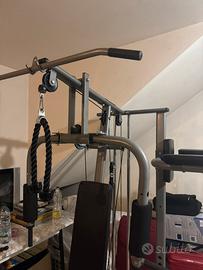 Vendo palestra multifunzione completa, ideale per allenamento total body a casa. Dotata di pesi a pacco, lat machine, chest press, leg extension e altri esercizi. Struttura solida e compatta. Completa di accasori per tricipiti + doppia panca per addominali. Vendo per cambio abitazione