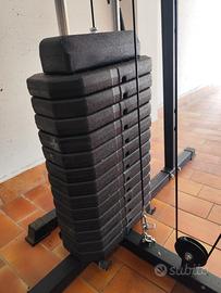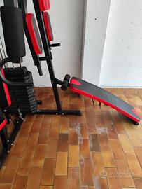 Vendo Palestra multifunzione da casa con pacco peso che può arrivare fino ad un massimo di 70 kg con accessori (corde, manubri) e panca addominali, ideale per chi vuole allenarsi a casa. L' ingombro totale in altezza è di circa 2 metri. Per