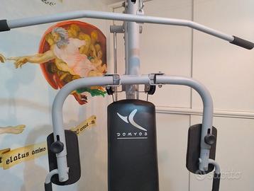 Palestra multifunzione da casa Domyos, completa di tutti gli attrezzi principali per routine di braccia, petto e gambe. In ottimo stato, come in foto.
