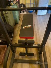 Vendo per inutilizzo panca multifunzione marca Enerfit con bilanciere e barra per trazioni, ripiegabile e regolabile in altezza.