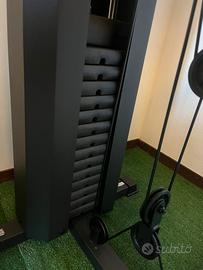 Pacco pesi in dotazione 75 kg, sedile regolabile su 4 posizioni per utenti di ogni altezza.