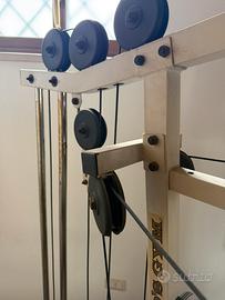 Vendo palestra multifunzione: lat machine, leg press, chest press, pec fly, lat rowing. Con pacco pesi.