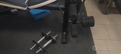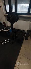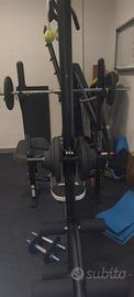 In eccellenti condizioni, attrezzo multifunzione dotato di accessori, come supporto per bicipiti, barra per trazioni, supporto x allenare le gambe ed inoltre e' dotato di manubri, bilanciere ed e' corredato da dischi in ghisa.