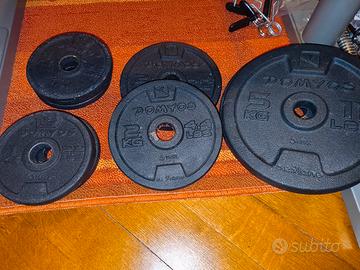 Palestra attrezzata da camera, usata , in buone condizioni. Robusta. con 8 pesi da 1 kg, 2 pesi da 2 kg, 2 pesi da 5 kg. Libretto istruzioni per il montaggio e l' utilizzo (esercizi).