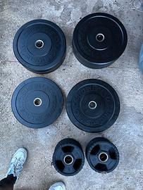 L’attrezzo ha, di serie, gli spuntoni per caricare i pesi con diametro da 50 mm (modello olimpionico).