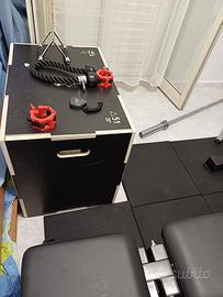 Vendo zona Napoli Pavimento gommato 2 cm Dischi pesi fino a 80kg Bilanciere panca piana Impugnatura lat machine normale e larga Impugnatura tricipiti corde e diversi angolazioni normale Tappetino per addominali Cronometro (Rack, manubri e panca toorx sono state gia vendute) Vendo sia tutto completo sia pezzi singoli. Per i prezzi, scrivetemi in privato!
