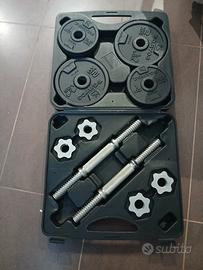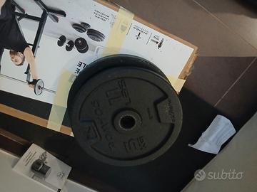 vendo palestra completa di panca, scatola con manubri di un totale di 20 kg suddivisi in : 4 da 2kg e 8 da 1kg, pesi da 30 kg suddivisi in 2 da 10kg e 2 da 5 kg, e due bilancieri tutto nuovo usato solo un paio di volte