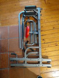 L'altezza della sbarra per fare le trazioni è regolabile, può alzarsi ulteriormente rispetto alla foto.